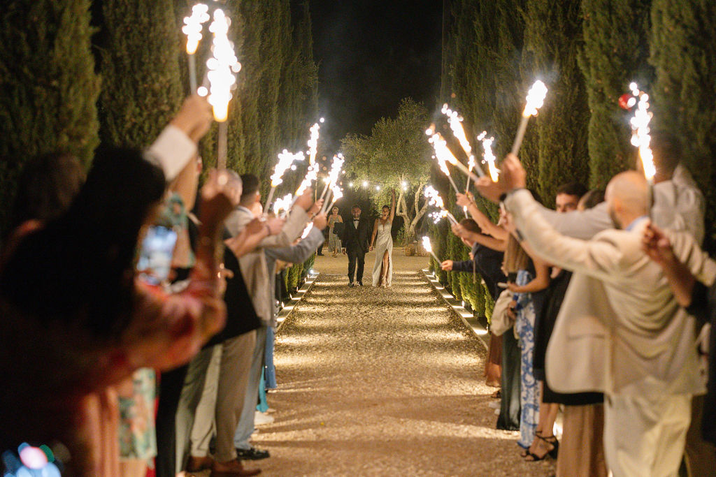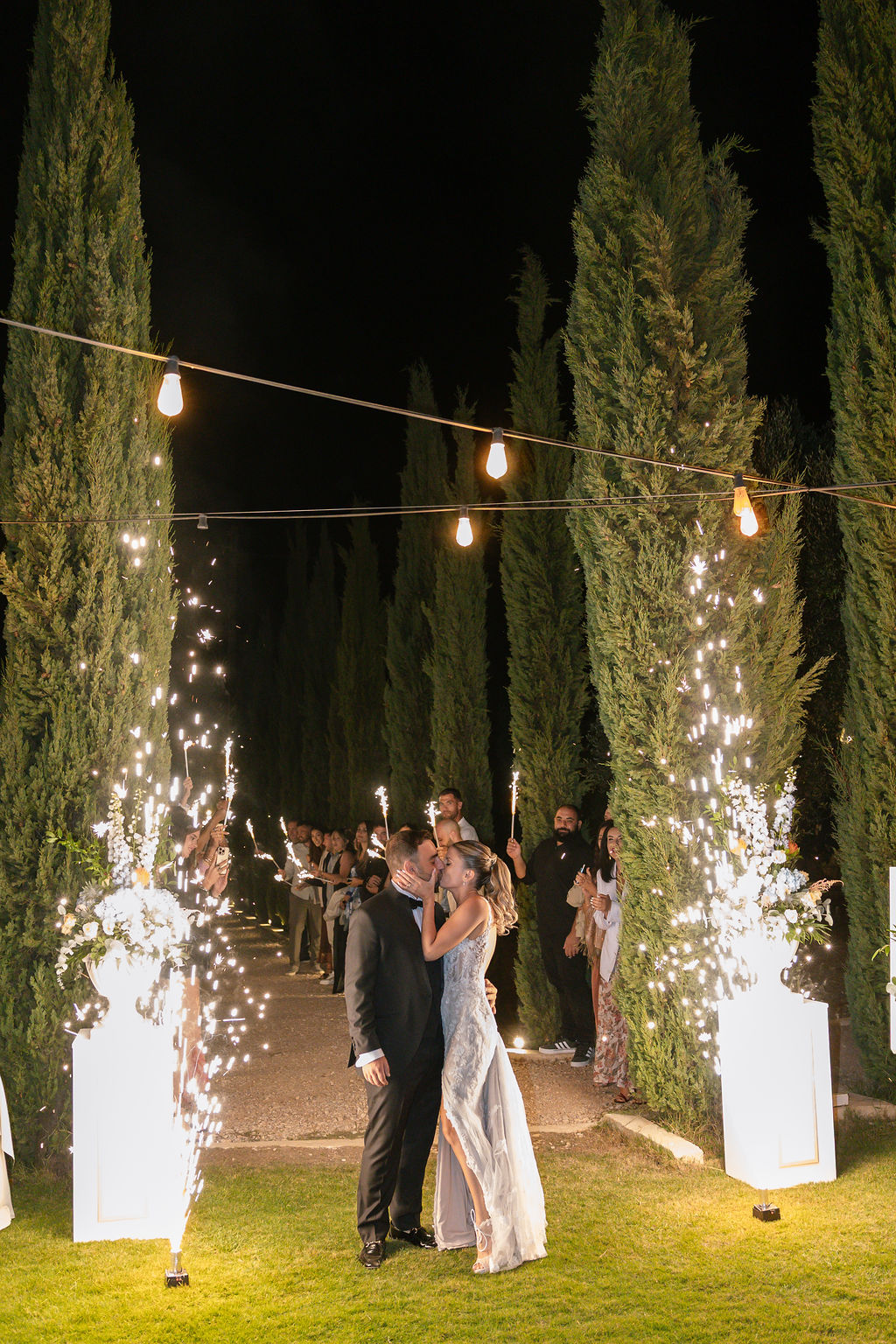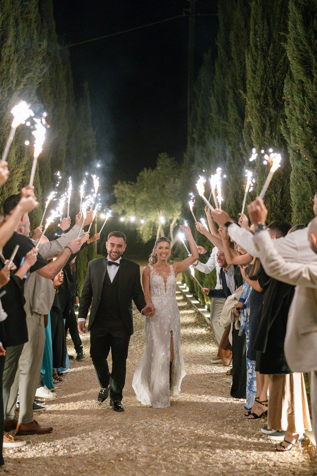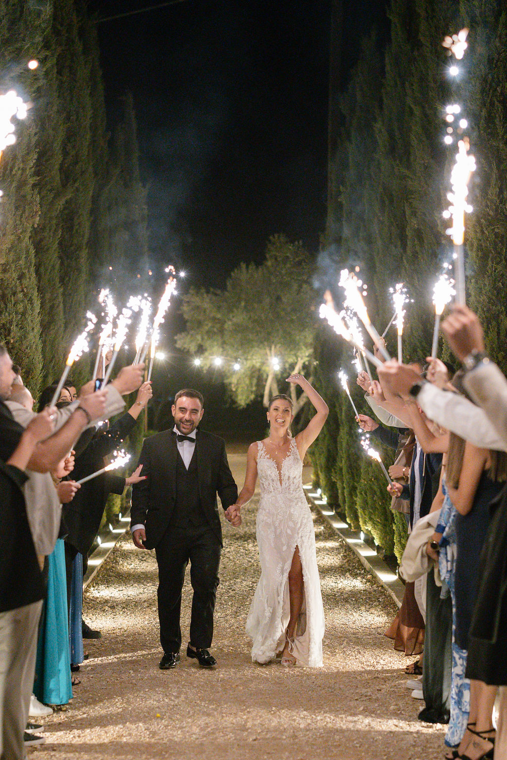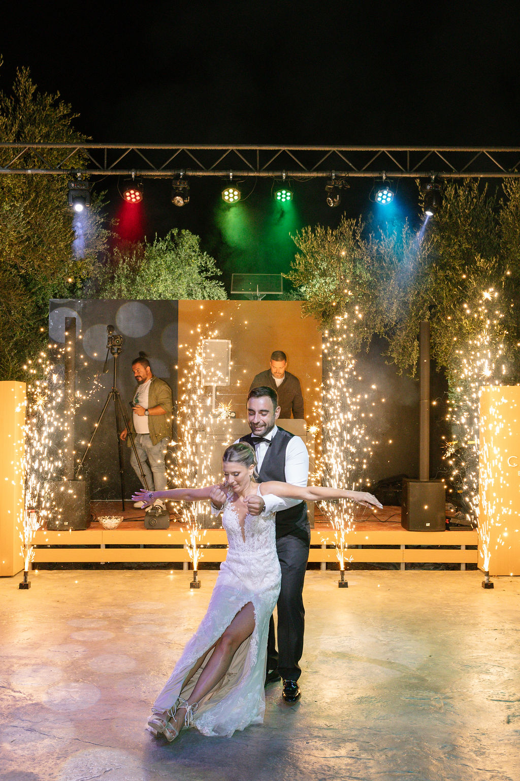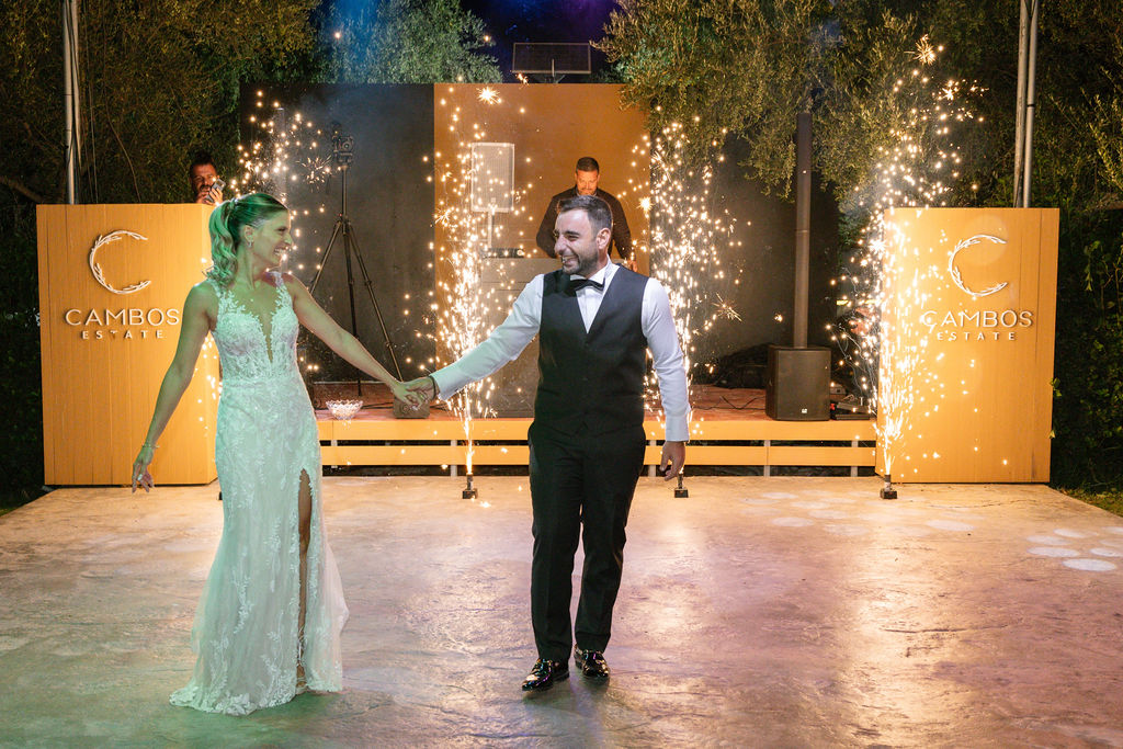 The photos of the couple’s entrance with sparklers, under the glow of the chandelier and professional club lighting, showcase the pure joy and the energy of a party that lasted until the early morning hours.